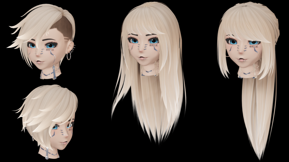 - 3 Distinct Hairstyles - smooth dissolves on change